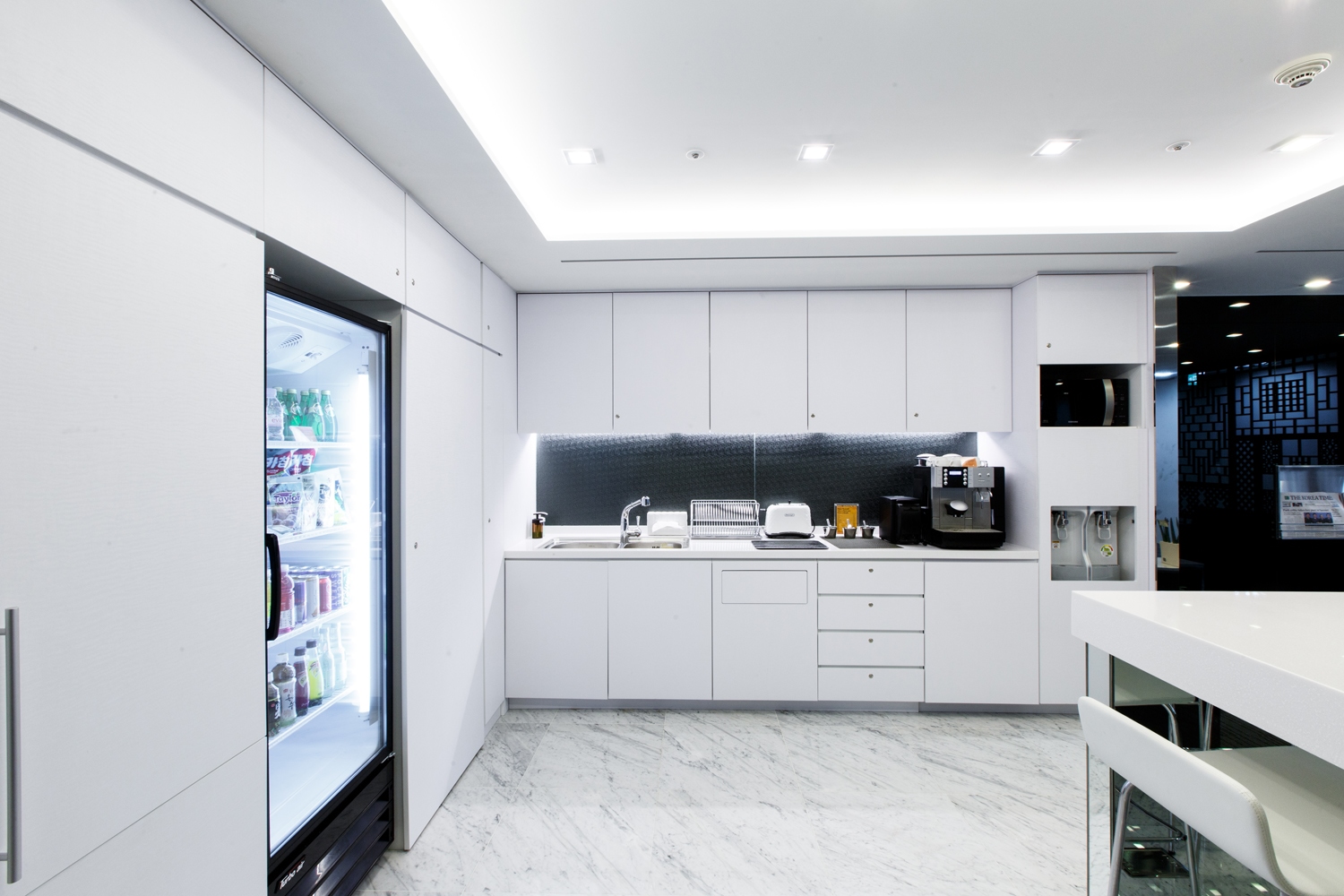 편안한 쇼파, 고급 안마의자, 자연 친화적인 휴식공간, 간단히 식음료를 즐길 수 있는 테이블과 스툴 등을 갖추고 있습니다. 라운지 공간에는 공용 냉장고, 얼음정수기, 커피머신, 전자렌지, 토스트기, 싱크대, 식기 등이 있습니다.